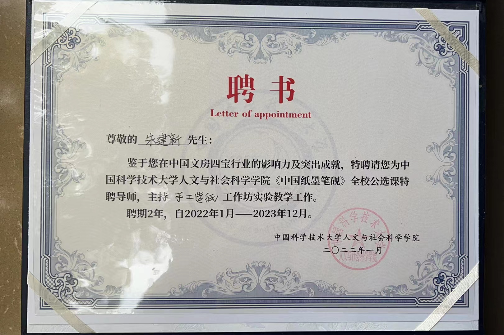 2020年公司實(shí)現(xiàn)了文化類規(guī)上企業(yè),迄今已申請了15項(xiàng)發(fā)明專利,19項(xiàng)實(shí)用新型專利,其中已授權(quán)發(fā)明專利3項(xiàng),實(shí)用新型專利11項(xiàng);2022年,公司為北京第24屆冬季奧運(yùn)會提供楮皮紙和紀(jì)念品,非遺傳承人朱建新被授予北京2022年冬季奧會參與證書,以感謝第24屆冬奧會取得圓滿成功做出的貢獻(xiàn)。2022年-2024年,朱建新被中國科技大學(xué)聘為《中國筆墨紙硯》全校公選課特聘導(dǎo)師;2023年,朱建新獲省級非遺傳承人稱號、“黃山工匠”稱號。